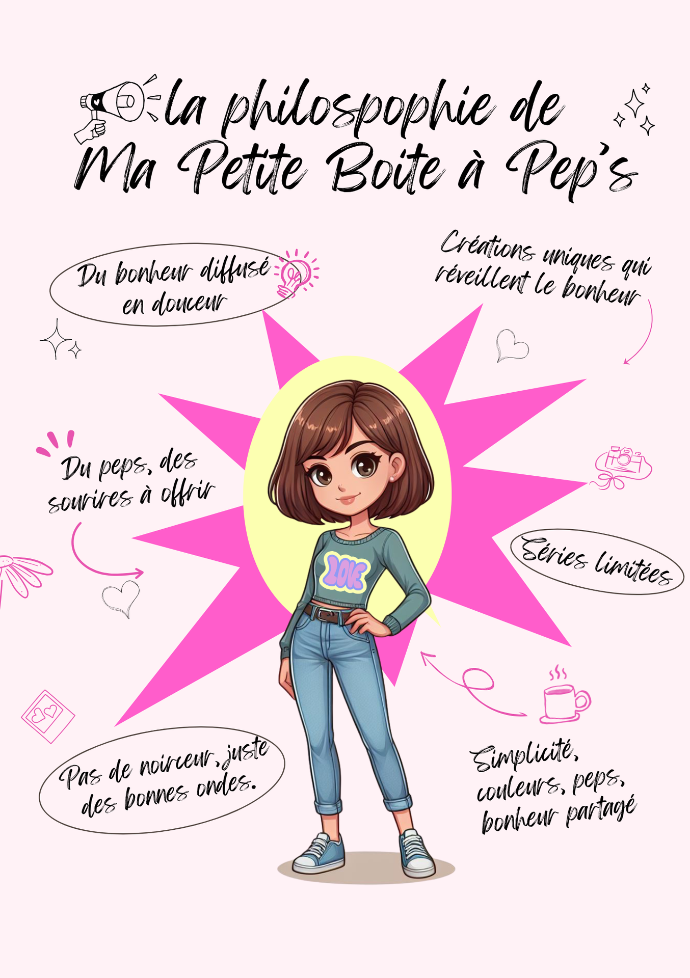 Ma Petite Boîte à PEP’s, c’est une parenthèse de douceur et d'énergie positive. Un mélange de tout ce qui m'anime: la créativité, l'envie de faire plaisir, et le besoin de semer un peu de bonne humeur autour de moi.
